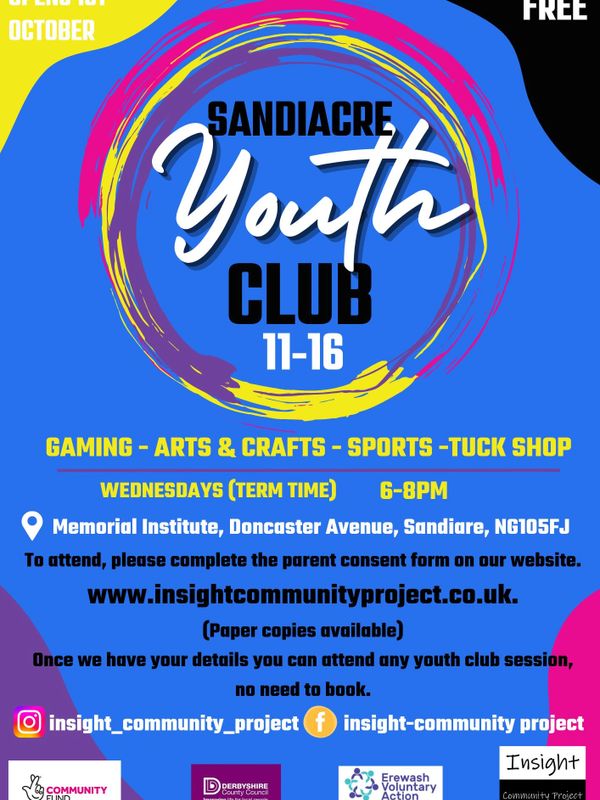 Sandiacre youth club takes place every Wednesday during term time.